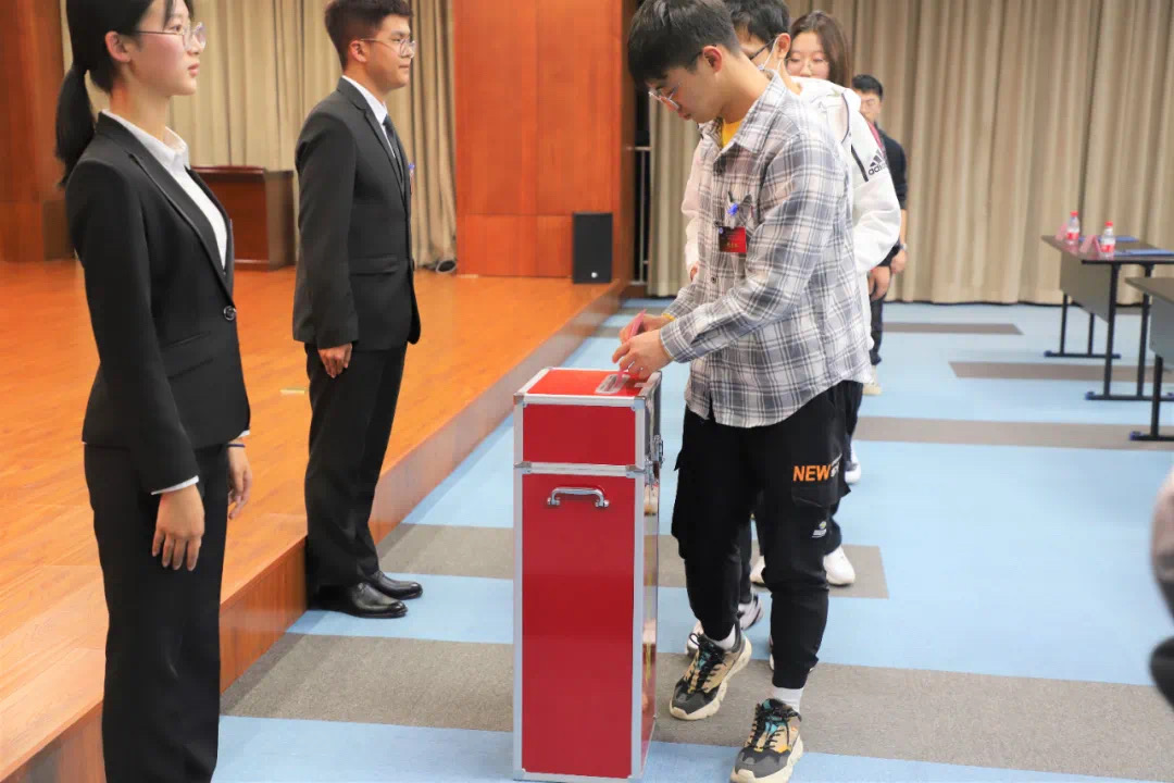 在候选人竞选演讲后,现场全体正式代表进行民主投票,投票过程秉持公平、公正的原则,投票结束后,由监票人、计票人收取选票进行核算。最后,陈思曈、张雅淇、郭文韬、刘春龙、李妍、高心如6名同学成功当选永利第二十二届学生组织主要负责人。