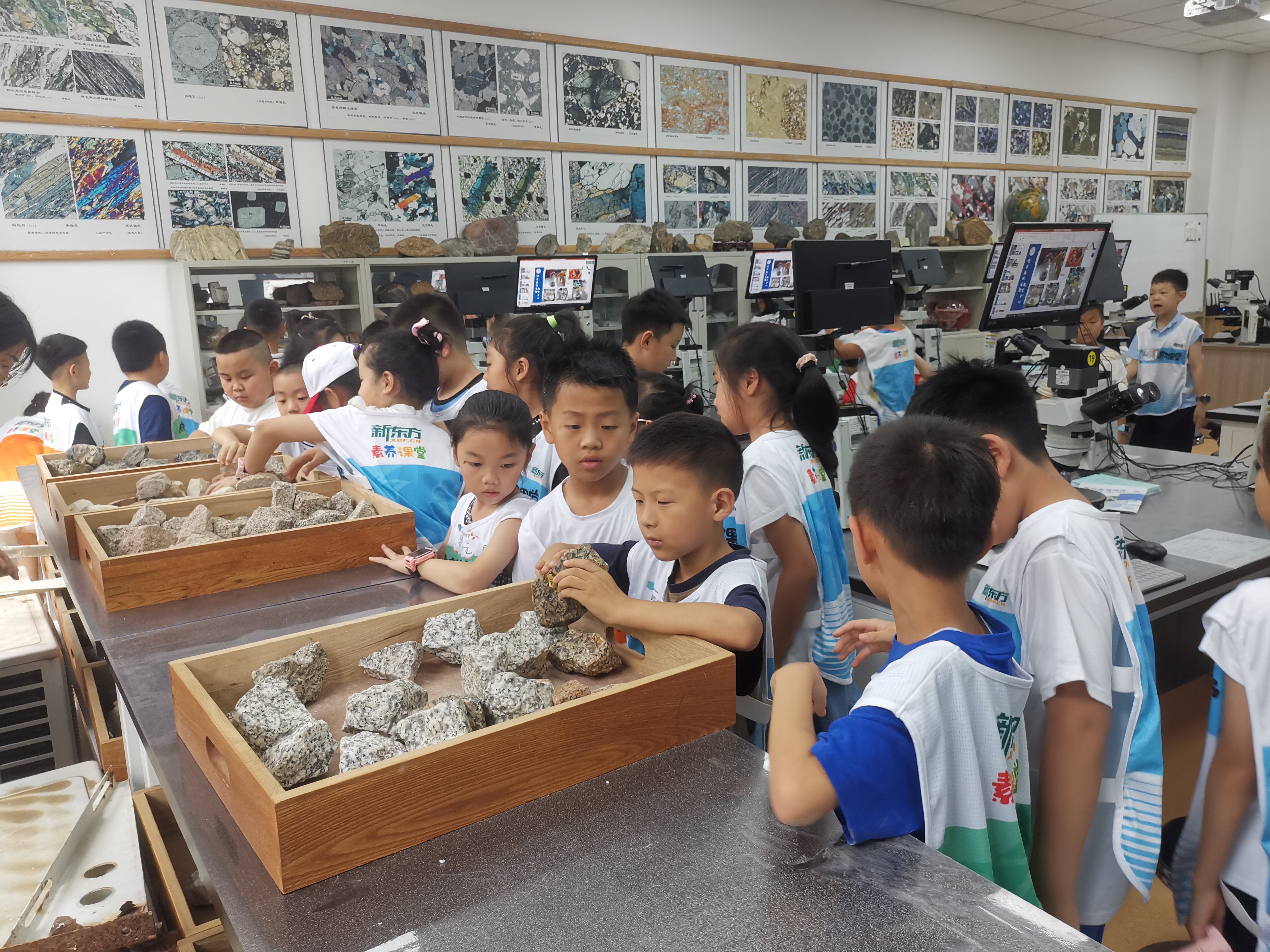 自7月13日至28日,我地学基础实验教学中心承接由吉林大学培训学院策划的面向中小学生的“新东方素养课堂”暑期科技实践教育系列活动。本次活动利用周末时间,为期5天,接待小学生1000余人。本次活动利用岩石学实验室、古生物与地层学实验室,开展走进地学实验室——地质学是什么;石英与生活——地球的物质组成;真真假假的化石——地球的演化三部分内容,通过知识讲解、实物演示、标本观察等多样化的学习体验,拓宽中小学生的知识视野,激发他们探索地球奥秘的学习兴趣。