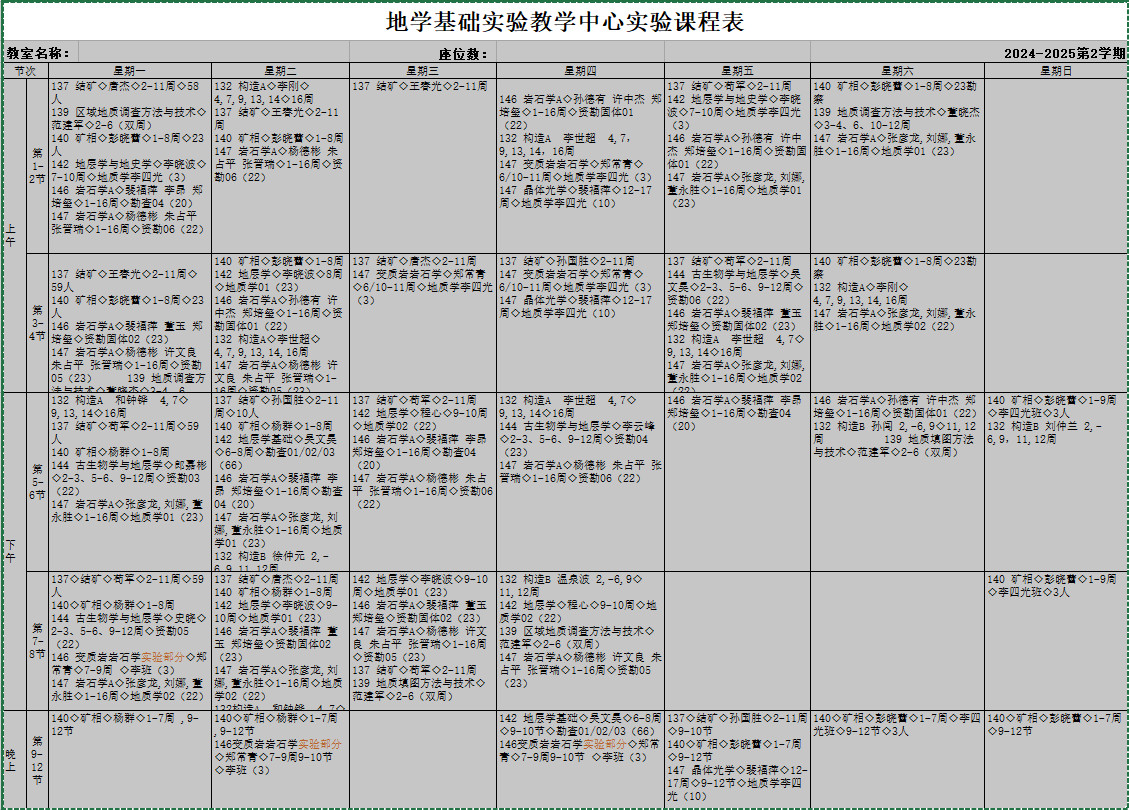 2024年春季学期实验课表